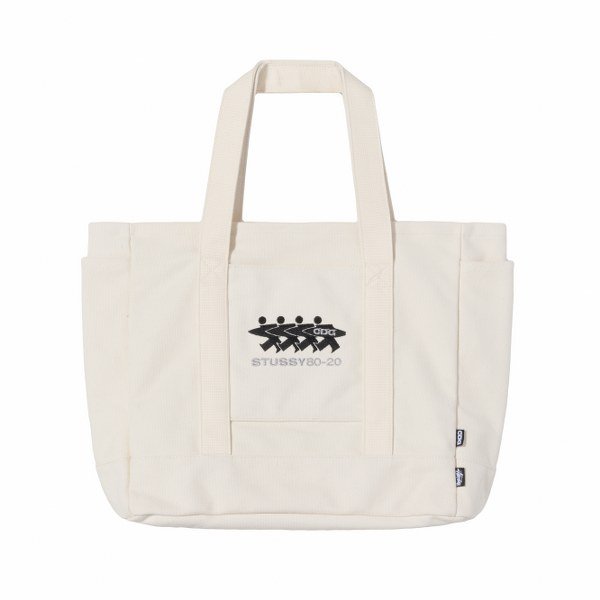 หรือจะเป็นไอเทมที่เน้นโลโก้ของทั้งสองแบรนด์ อย่างเสื้อยืด หมวก และ Tote Bag ที่มาพร้อมกับลาย Surf Guy ถือกระดานโต้คลื่นสุดคลาสสิคประจำแบรนด์ STUSSY