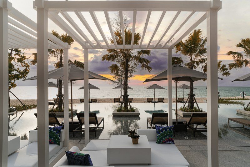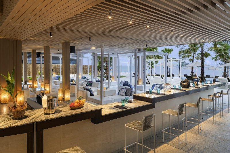 สีน้ำเงินอันสดใสของทะเลอันดามันสร้างสวรรค์สุดฮิปที่ ครามบีชคลับ (Kram Beach Club) ซึ่งแขกจะได้เติมพลังด้วยของว่างเบา ๆ อาหารเพื่อสุขภาพ อาหารทะเลสดๆ และอาหารเมดิเตอร์เรเนียน