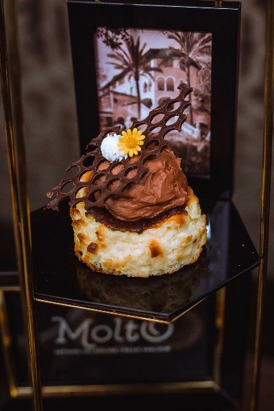 ชุดน้ำชายามบ่าย The St. Regis Bangkok x Molto เสิร์ฟในรูปแบบ 3 คอร์ส เริ่มต้นด้วยไอศกรีมมะม่วงเสาวรสเสิร์ฟในโคนคู่กับซัลซ่ามะม่วงยูซุ มีรสเปรี้ยวเพิ่มความสดชื่น พร้อมอิ่มอร่อยกับนานาเมนูคาวหวาน อาทิ ทาโก้กุ้งเสิร์ฟแบบพอดีคำ สลัดไข่เสิร์ฟคู่กับคาเวียร์ มูสเป็ดทานกับซอสส้ม มินิเบเกิลกับแซลมอนรมควันและครีมชีส ส่วนเมนูของหวานได้รับแรงบันดาลใจจาก เดอะ เซนต์ รีจิส ในเมืองต่าง ๆ นำมาจับคู่ทานกับไอศกรีมของมอลโต้ อาทิ ซานเซบาสเตียนชีสเค้ก หรือเป็นที่รู้จักกันในนามชีสเค้กหน้าไหม้ จาก The St. Regis Mardavall Mallorca Resort เกาะมายอร์กา ประเทศสเปน ทานคู่กับรสเอิร์ลเกรย์ นามะชีสช็อกโกแลต จาก The St. Regis Osaka ประเทศญี่ปุ่น ทานคู่กับไอศกรีมรสคิทแคทชาเขียว ริคอตต้าเฮเซลนัทชีสเค้ก จาก The St. Regis Venice ประเทศอิตาลี ทานคู่กับไอศกรีมรสนูเทลล่า และรสชาติไฮไลต์ เดอะ เซนต์ รีจิส บลูเบอร์รี่ ชีสเค้ก จาก The St. Regis Bangkok เสิร์ฟให้ลิ้มลองแบบแท่ง สโคนรส salted caramel และ rocky road พร้อมปิดท้ายด้วยมาการองไอศกรีมรสแอปเปิ้ลซูกัส เสิร์ฟพร้อมชา 1 ช็อต