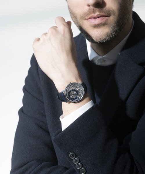 ที่ขาดไม่ได้คือเอกลักษณ์หน้าปัดรูปทรงสี่เหลี่ยมมนหรือทรงคุชชั่น บนตัวเรือนสแตนเลส สตีลทรงกลมขนาด 42 มิลลิเมตร และเมื่อพลิกกลับยังเผยให้เห็นการทำงานของกลไกได้อย่างชัดเจนผ่านกระจกฝาหลังแซฟไฟร์คริสตัล จับคู่สายรัดข้อมือยางแนวสปอร์ตสีน้ำเงิน ผลิตจำกัดเพียง 888 เรือน