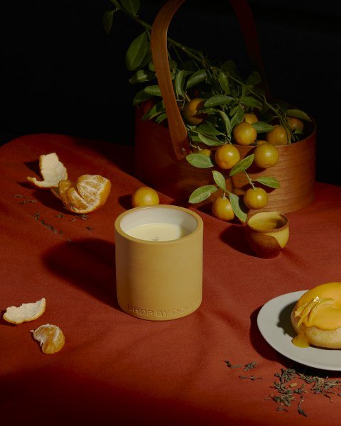 Mandarin Orange & Oolong no.303 : โดนัทกลิ่นหอมจาก 2 รสโดดเด่นที่ได้รับแรงบันดาลใจจากเทศกาลตรุษจีน กับประเพณีไหว้บรรพบุรุษด้วยส้มจีนผลสวย และชาอู่หลงคุณภาพ ซึ่งโดนัทรสชาตินี้มีความซับซ้อนน่าสนใจที่สอดไส้ 2 รส ทั้งส้มแมนดาริน และชาอู่หลงด้านละฝั่ง เพิ่มความพิเศษในการรับประทานโดยให้เลือกสัมผัสด้านรสส้มแมนดารินหอมหวานอมเปรี้ยว จากนั้นตัดด้วยการสัมผัสอีกด้านที่เป็นรสชาอู่หลงหมายเลข 303 ที่โดดเด่นตรงความหอมกรุ่นเฉพาะตัว เป็นการตัดรสชาติที่ลงตัวและพิเศษหาไม่ได้ในที่อื่นใดนอกจาก Drop by Dough ถือเป็นขนมหวานที่ให้รสสัมผัสแปลกใหม่ ปัญญ์ปุริสนใจในความแตกต่างที่ลงตัวนี้จึงนำมาสร้างสรรค์เป็นเทียนหอมให้จินตนาการถึงความสดชื่นยามจิบชาอู่หลงหอมกรุ่นเวลาเริ่มวันเช้าตรู่ พร้อมเคล้าความหอมด้วยผลส้มอันแสนสดชื่น เตรียมรับวันใหม่อย่างเต็มที่