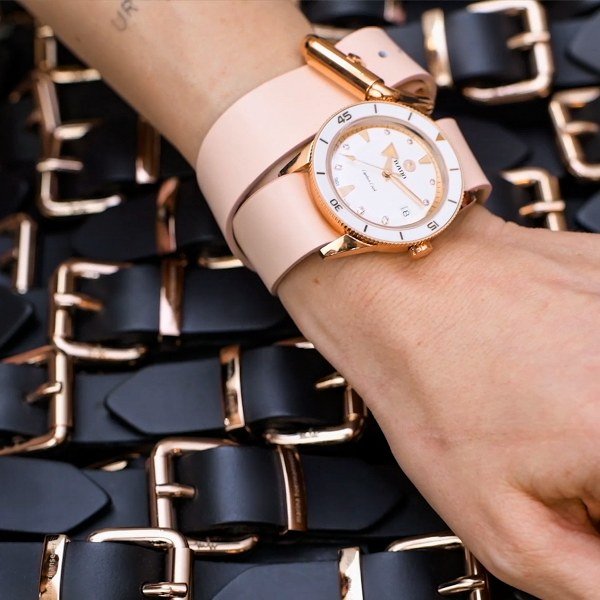 RADO Captain Cook x Marina Hoermanseder นาฬิการุ่นใหม่มีสไตล์ขนาด 37 มม. มีองค์ประกอบที่เป็นเอกลักษณ์ของ Marina เช่น หัวเข็มขัดที่เป็นสัญลักษณ์การค้าของเธอ สายหนังสีชมพูที่แสดงออกถึงความมีชีวิตชีวาและความร่าเริง พร้อมตัวเรือนนาฬิการูปทรงกลมที่เข้ากันได้อย่างลงตัว มีการประดับประดาด้วยโลโก้ของ Marina Hoermanseder นาฬิการุ่นนี้เป็นนาฬิกาที่มีทั้งความสง่างามและทรงพลังในหนึ่งเดียว โดยใส่ความกล้าในการสร้างสรรค์ผลงาน และรวมเอาสไตล์ทุกอย่างของ Marina เข้าไว้ด้วยกัน สิ่งเหล่านี้เองที่คนดังระดับโลกหลายต่อหลายคนพากันหลงใหลในสไตล์ของเธอ ไม่ว่าจะเป็น Lady Gaga หรือ Paris Hilton เห็นได้ชัดว่าในฐานะผู้หญิงแล้ว นี่เป็นตัวอย่างที่สะท้อนถึงคาแร็กเตอร์ ความคิดริเริ่ม และความกล้าหาญซึ่งเป็นแง่มุมที่ Rado ต้องการมุ่งเน้นในการทำงานร่วมกับนักออกแบบที่มีพลังในหลายแง่มุม นอกจากนี้ยังเป็นโอกาสดีที่นาฬิการุ่นนี้ยังได้แสดงออกถึงศิลปะ ถือเป็นการทำงานในระยะยาวของแบรนด์ที่เต็มไปด้วยรายละเอียดอันวิจิตรงดงาม เช่น รายละเอียดของสีโรสโกลด์ในเข็มนาฬิกา ตัวบ่งชี้เวลา และตัวเรือน เป็นต้น