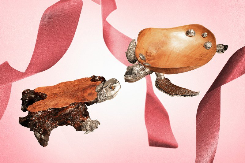 Sea Turtle Wooden Bowl ชามไม้แกะสลักจากไม้เนื้อแข็งเพียงชิ้นเดียว ประดับด้วยชิ้นงานเงินสเตอร์ลิงเป็นรูปเต่าทะเล ให้ความหมายอันลึกซึ้ง โดยเต่านั้นเป็นสัญลักษณ์แห่งความสงบสุข อาศัยอย่างกลมกลืนกับผืนดิน สายน้ำ และธรรมชาติ ชามไม้นี้ถูกเพิ่มลูกเล่นด้วยการประดับไทเกอร์อายควอตซ์ที่ดวงตาส่งผลให้ชิ้นงานดูมีชีวิตชีวายิ่งขึ้น