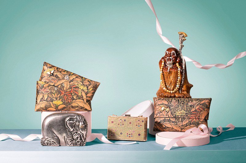 Balinese Painted Bamboo Handbag with Butterfly กระเป๋าคลัทช์หวาย LOTUS ถือเป็นไอเทมซิกเนเจอร์ของ Lotus Arts de Vivre มายาวนานกว่า 20 ปี สำหรับกระเป๋ารุ่นใหม่นี้ ศิลปินชาวบาหลีที่มีชื่อเสียง ได้ร่วมรังสรรค์งานวาดภาพศิลปะโดยใช้สีธรรมชาติ ที่ให้รายละเอียดที่สวยงามอย่างยิ่ง ภาพวาดบนกระเป๋าแต่ละใบได้รับการออกแบบเฉพาะตัว จึงมีลวดลายไม่ซ้ำกันให้ความโดดเด่นเป็นเอกลักษณ์ พร้อมเพิ่มลูกเล่นให้แก่กระเป๋าด้วยการประดับชิ้นงานรูปผีเสื้อทำจากเปลือกหอยมุกที่คัดสรรมาอย่างพิถีพิถัน ส่วน Elephant Handbag with Pink Tourmaline กระเป๋าดีไซน์รูปช้างทำจากเงินแท้ งดงามด้วยการตกแต่งดวงตาทั้งสองข้างด้วยทองคำประดับพลอยสีชมพู กระเป๋ารังสรรค์ขึ้นด้วยฝีมือของช่างฝีมือชั้นสูงของ Lotus Arts de Vivre ด้านบนซึ่งเป็นปากกระเป๋าประดับด้วยลูกบิดดอกบัวชิ้นเล็ก ด้านในกระเป๋าบุด้วยผ้าไหมสีดำสุดเลอค่า กระเป๋ามาพร้อมสายสะพายที่สามารถถอดออกได้ ทำจากทองเหลืองชุบด้วยแบลคโรเดียมอย่างสวยงาม