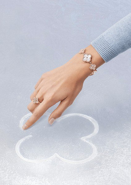 ล่าสุดกับเครื่องประดับจากในคอลเลคชัน Perlée ที่เพิ่งเผยโฉมความงามออกมาเมื่อเร็วๆนี้กับ กำไลข้อมือ Perlée sweet clovers สำหรับสวมสลับจับคู่กับแหวน รองรับการตกแต่งรายละเอียดโมทิฟสีโรสโกล์ด ฝังเพชรระยับแสงละมุนละไม อันเป็นผลจากกระบวนการผลิตสุดพิถีพิถัน และบ่งบอกถึงทุกแง่มุมเอกลักษณ์แห่งความเป็น Van Cleef & Arpels อย่างชัดเจน ท่ามกลางประกายสุกสว่างประดับผิว ลีลาล้อแสงระยิบระยับยังสร้างแรงบันดาลใจ ให้ความสนุกสนานในการเลือกจับคู่สวมใส่ร่วมกับเครื่องประดับต่างคอลเลคชัน ได้อย่างหลากหลายไร้ขีดจำกัด