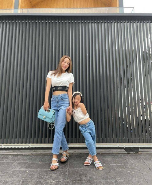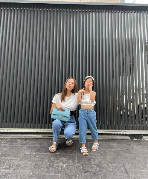 คุณเปเป้ วาริธร กันท์ไพบูลย์ ดีไซเนอร์เจ้าของแบรนด์ Varithorn Boutique ได้เลือกรองเท้า Birkenstock รุ่น Florida Kids BFDD Unicorn Seafoam ที่มีจุดเด่นตรงสายคาดสามเส้นที่ช่วยเพิ่มความกระชับ และคล่องตัวยามสวมใส่ให้ลูกสาว น้องไอรา แมทช์กับเสื้อครอปท็อปสีขาวกับกางเกงยีนแบบเดียวกันกับคุณแม่ ต่างกันตรงที่รองเท้าของคุณแม่คนสวยเป็นรองเท้ารุ่น Franca BF Silver