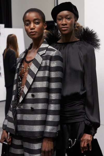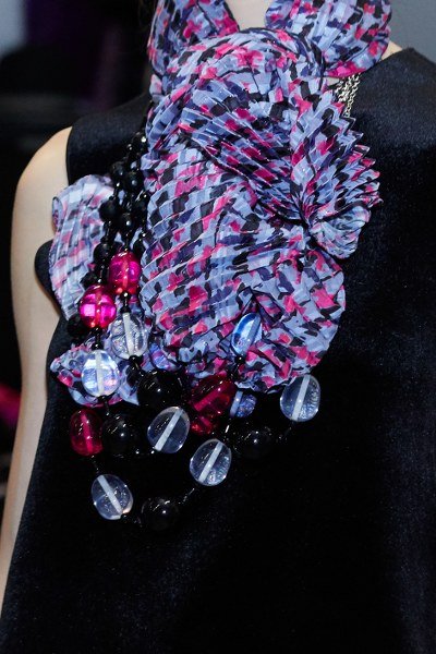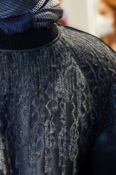 โครงร่างสำหรับเสื้อผ้าผู้หญิงจะดูเพรียวด้วยดีไซน์แบบเอวสูง สอดแทรกลูกเล่นที่มากไปด้วยความขัดแย้ง ดังจะเห็นได้จากการผสมผสานผ้านิตที่มีเนื้อผ้าแบบทึบเข้ากับกำมะหยี่ที่มีผิวสัมผัสอันอ่อนละมุน หรือการจับคู่โค้ทตัวยาวเข้ากับกางเกงขาสั้น ซึ่งสวมทับสต็อกกิ้งผ้าทึบ เสื้อเบลเซอร์จะมาพร้อมโครงร่างที่อ่อนนุ่ม ประดับด้วยกระดุมทรงกลมที่จะเปล่งกระกายยามต้องแสงไฟ เสื้อครอปที่มาพร้อมกับเชือกผูกจะชวนให้นึกถึงเสื้อผ้าสไตล์สปอร์ต นอกจากนี้ Emporio Armani ยังตกแต่งลวดลายกราฟฟิค และลายปักไว้บนพื้นผิวของเสื้อผ้า ในขณะที่จั๊มป์สูทและดีเทลช่วงบ่าแบบยกสูงจะช่วยสะท้อนภาพยูนิฟอร์มทหารที่จะโดดเด่นในแสงไฟ ลวดลายกราฟฟิคที่นำมาต่อกันอย่างคาดไม่ถึงบนเดรสผ้ากำมะหยี่จะสร้างการเคลื่อนไหวให้แก่สีสันอันสดใสอย่างสีม่วงและสีชมพู เพื่อเพิ่มความโดดเด่นยามผสมผสานไปกับพื้นสีดำที่เปล่งประกายยามค่ำคืน นอกจากนี้เครื่องประดับอย่างรองเท้าส้นแบน รองเท้าบูทสต็อกกิ้งแบบยาว (thigh-high stocking boots) และกระเป๋าถือใบเล็กยังจะถูกตกแต่งด้วยกราฟฟิคที่มากไปด้วยสีสันสลับกับผ้ากำมะหยี่เช่นเดียวกัน