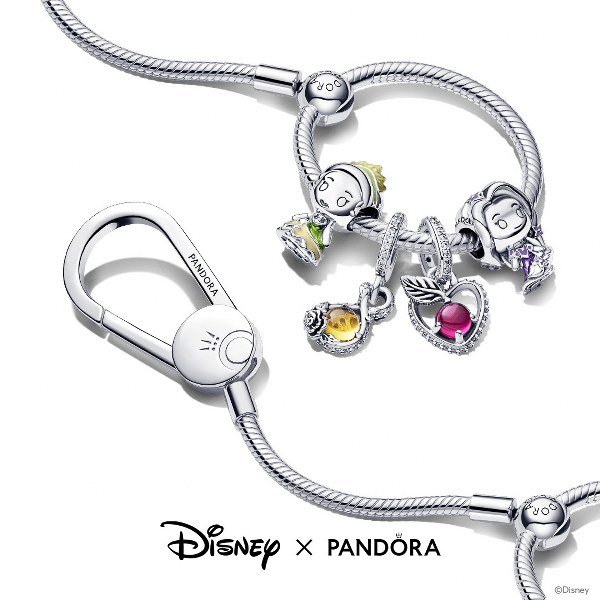 สำหรับคอลเลคชั่น Disney Princess x Pandora ยังมีสร้อยข้อมือรุ่นใหม่ล่าสุด Disney Pandora Moments Heart Clasp Snake Chain Bracelet ที่ออกแบบมาพิเศษ หัวล็อกรูปหัวใจสลักรูปมงกุฏสีทองสื่อความเป็นเจ้าหญิง พร้อมสลักความหมายดีๆว่า “Never give up on your dreams” นอกจากนี้ ยังมีจี้ประดับ (Dangle) ที่เป็นตัวแทนเรื่องราวสื่อถึงเอกลักษณ์ของเจ้าหญิงดิสนีย์ในแต่ละเรื่องอีกด้วย อาทิ Disney Snow White Apple Pendant จี้คริสตัลรูปแอปเปิ้ลสีแดง สะท้อนถึงฉากสำคัญที่สโนไวท์กินแอปเปิ้ลอาบยาพิเศษ , Disney Belle Infinity & Rose Flower Pendant จี้คริสตัลสีเหลืองจากสีชุดราตรี ในฉากเต้นรำกับ The Beast ซึ่งเป็นฉากสำคัญที่ทั้งสองเริ่มรักกัน รูปทรงของจี้เป็นสัญลักษณ์อินฟินิตี้ ความรักนิรันด์ ด้านหลังฉลุเป็นลวดลายของดอกกุหลาบ เป็นต้น ในราคาเริ่มต้นที่ 2,500 บาท