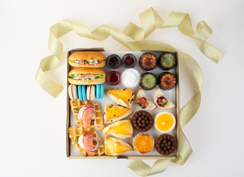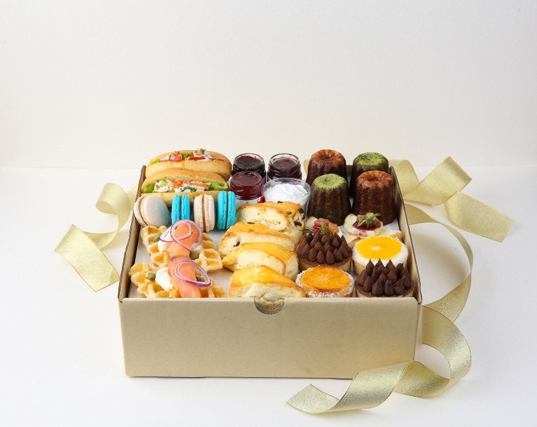 อิ่มอร่อยไปกับ มินิแซนวิชแคนนาเดียน ล็อบสเตอร์ ครัวซองวาฟเฟิล พร้อมสโมคแซลมอนและครีมชีส และเบเกิลเสิร์ฟพร้อมบรีชีส ราสเบอรี่และน้ำผึ้ง ต่อด้วยขนมหวานอย่างทาร์ตชอคโกแลตและทาร์ตส้ม ขาดไม่ได้กับสโคนหลากรสแสนอร่อย ไฮไลท์อยู่ที่คานาเล่ ที่มีมาทั้งแบบคลาสสิคและรสชาเขียว พร้อมทั้งมาการองของโปรดใครหลายๆคน