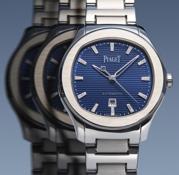เริ่มต้นด้วยเพียเจต์ โปโล เดท ตัวเรือนสเตนเลสสตีล จับคู่สายรัดข้อมือวัสดุเดียวกัน มีให้เลือก 2 สไตล์; โมเดลคลาสสิคที่มาพร้อมหน้าปัดไอคอนนิคสีน้ำเงิน และอินเด็กซ์ประดับเพชร (G0A46018)