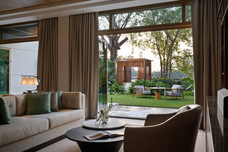 วิลล่าทุกหลัง ประกอบด้วยห้องนอนพร้อมเตียงขนาดคิงไซส์ ห้องแต่งตัวแบบ “วอร์คอิน” ขนาดใหญ่ ห้องน้ำหินอ่อนที่มีห้องอาบน้ำบริเวณด้านในและกลางแจ้ง มีบานประตูไม้เลื่อนและประตูกระจกแบ่งสัดส่วนห้องนอนออกจากบริเวณห้องนั่งเล่นและบริเวณรับประทานอาหารเพื่อความเป็นส่วนตัว ภายในห้องรับแขกมีประตูกระจกบานใหญ่ที่เชื่อมต่อกันและสามารถเปิดออกสู่ชานระเบียงด้านนอก สวนทรอปิคัลใต้ร่มไม้ใหญ่ มุมศาลาพักผ่อนริมแม่น้ำ และสระแช่จากุซซี่กลางแจ้ง วิลล่าหลังนี้เหมาะสำหรับการจัดกิจกรรมกลางแจ้งเพื่อสังสรรค์ระหว่างกลุ่มคนสนิท มิตรสหาย หรือสมาชิกในครอบครัว ไปพร้อมๆ กับชื่นชมวิถีชีวิตของผู้คนบนสายน้ำแห่งวัฒนธรรม