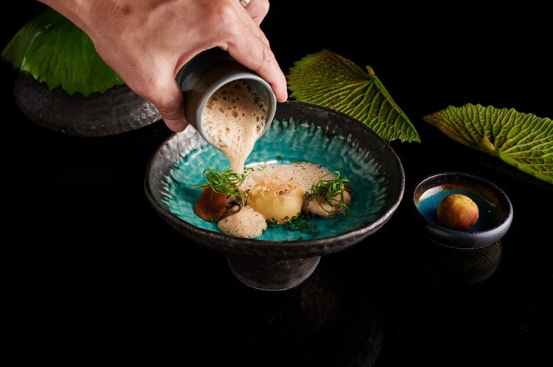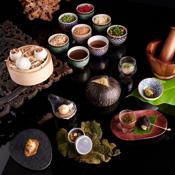 สำหรับเมนู ‘ซัมเมอร์ เจอร์นี’ นี้ เชฟทั้งสองขอเชิญท่านเริ่มมื้อค่ำที่น่าจดจำด้วยอาหารเรียกน้ำย่อย ‘สตรีท ฟู้ด’ เสิร์ฟพอดีคำ อาทิ ไข่แดงเค็มกับไข่ปูรสชาติหวานมันเค็ม ถุงข้าวเม่ากรุบกรอบปรุงรสด้วยผงแกงกะหรี่ ต้มข่าเห็ดเมอแรงค์ ซุปเห็ดช็อตมาพร้อมกับเห็ดมอเรลสอดไส้ขิง คาเวียร์ซีอิ๊วญี่ปุ่นอะโวคาโดปูว์เร เป็นต้น