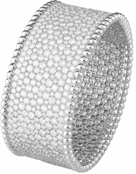 กำไลข้อมือ “Perlée” ประดับเพชรและตัวเรือนไวท์โกลด์ 18K โดย Van Cleef & Arpels