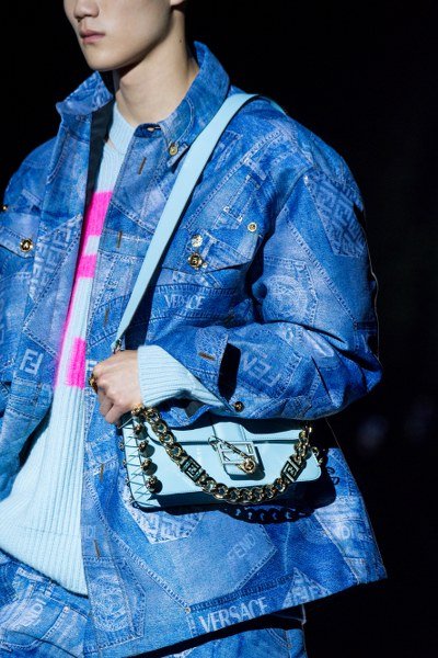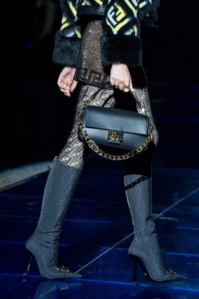คอลเลกชั่นนี้ได้แรงบันดาลใจจากช่วงกลางจนถึงปลายของยุค 90s อันเป็นช่วงเวลาอันโดดเด่นของแฟชั่นเฮาส์แห่งนี้ VERSACE BY FENDI นำเสนอแนวคิดเรื่องทวิลักษณ์ เห็นได้จากการนำเอาลายโมโนแกรมของเฟนดิมาหลอมรวมเข้ากับลวดลายสไตล์กรีกอันเป็นเอกลักษณ์ของเวอร์ซาเช่ ในขณะที่เนื้อผ้าก็เป็นผ้าสองด้านที่สามารถสวมใส่แบบกลับด้านได้ โดยมีการซุกซ่อนเอกลักษณ์ในงานออกแบบที่แสดงให้เห็นถึงฝีมือเชิงช่างของเหล่าเอเตลิเยร์ของเฟนดิไว้ด้วย ดังเช่น ผ้าทอด้วยโซ่อันเป็นเอกลักษณ์ของเวอร์ซาเช่ในครั้งนี้ก็ทำด้วยหนังอันเป็นความเชี่ยวชาญของเฟนดิ