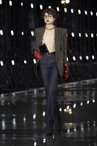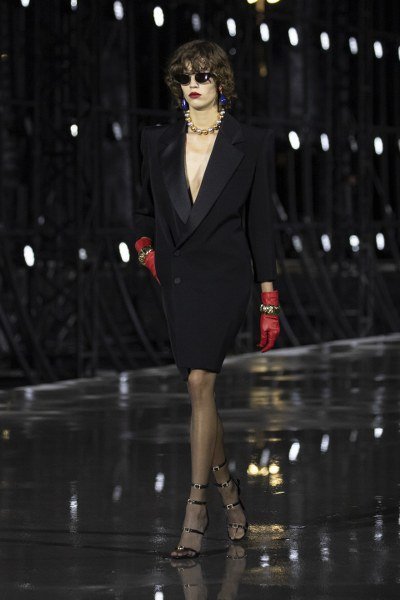 ด้วยสไตล์ส่วนตัวของพาโลมา ปิกัสโซ่ (PALOMA PICASSO) ที่ก้าวข้ามขอบเขตของเพศสภาพ ผสมผสานทั้งความเป็นหญิงและชาย แต่ถึงอย่างนั้นก็ยังคงความหรูหรา เซ็กซี่ และเข้มแข็ง จนกลายมาเป็นสไตล์ส่วนตัวที่โดดเด่นมีเอกลักษณ์ โดย” ANTHONY VACCARELLO ได้หยิบยืมลุคอันเป็นที่จดจำของเธอ ทั้งผมสีดำขลับและลิปสติกสีแดงเข้ม มาใช้บนรันเวย์โชว์ในครั้งนี้