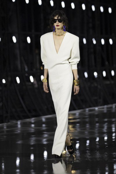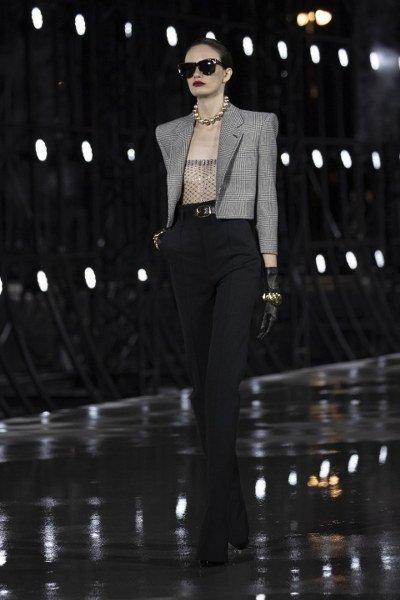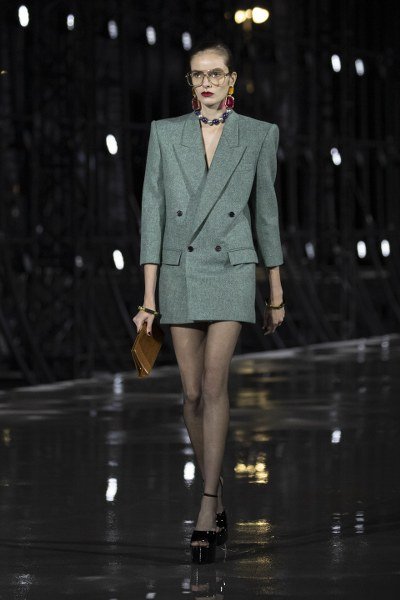 คอลเลคชั่นนี้โดดเด่นด้วยการผสมผสานสไตล์มัสคิวลีนและเฟมินีนเข้าไว้ด้วยกัน โดยซิลลูเอตต์ของเสื้อผ้านั้นได้แรงบันดาลใจมาจากผลงานอันเป็นประวัติศาสตร์ของ YVES SAINT LAURENT ในช่วงยุค 80s แจ๊กเก็ตตัวสั้นและยาว ชุดสูทกางเกงสไตล์เลอสโมกกิ้ง เชิ้ตเดรส และเบลเซอร์เดรส ที่ตัดเย็บอย่างประณีต โดดเด่นด้วยการเสริมไหล่ ไหล่ตั้ง กว้างและเส้นสายเฉียบคม แขนเสื้อมีความยาวแบบสี่ส่วนระหว่างข้อศอกและข้อแขน นอกจากนี้ยังมีการประดับด้วยกระดุมเม็ดใหญ่