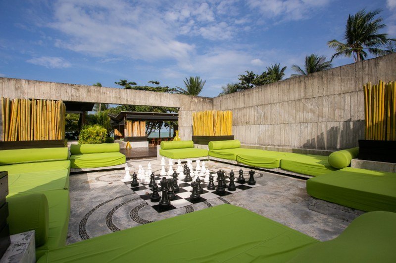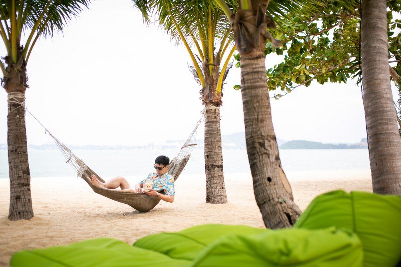 ก้าวออกจาก WOW Ocean Haven มานิดหน่อยก็พบกับชายหาดหลักของโรงแรม ซึ่งอยู่ข้างๆ SIP Bar สีเขียวสดใส พร้อมหมากรุกขนาดใหญ่วางตรงกลาง บริเวณนี้นับว่าเป็นจุดที่เราจะมาชิลล์ๆ ได้ทั้งวัน เพราะมีมุมให้เลือกนั่งๆ นอนๆ ได้เยอะแยะ ยิ่งถ้าเกิดอากาศดีมีลม อาจจะทำให้เผลอหลับไม่รู้ตัว (--)”