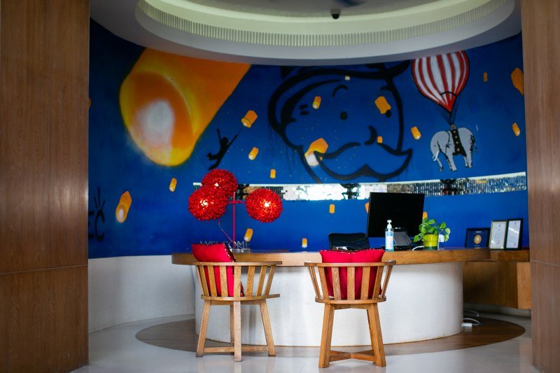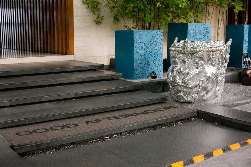 เมื่อเข้ามาถึงล็อบบี้นอกจากจะตะลึงกับวิวของอ่าวไทยเบื้องหน้าแล้ว ยังต้องเหลือบมองผลงานกราฟฟิกที่ออกแบบโดย Alex Face ทุกครั้ง ซึ่งเติมสีสันต้อนรับให้กับแขกที่มาเยือนโรงแรมทุกๆคน