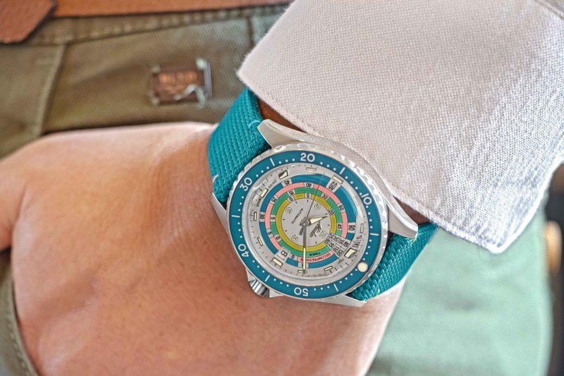 โดยสำหรับผู้ที่ชื่นชอบในความหลากหลายเรือนเวลารุ่นนี้ยังถูกดีไซน์มาพร้อมกับฟังก์ชั่นที่สามารถเปลี่ยนสายได้ถึง 3 แบบด้วยกัน ไม่ว่าจะเป็น สายถักสเตนเลสสตีล สายหนังเคลือบในโทนสีน้ำตาลสุดสีคลาสสิก และสายผ้าสีเขียวเทอร์ควอยซ์สไตล์สปอร์ตที่เย็บจากด้ายเฉดสีเดียวกันกับกรอบหน้าปัด ซึ่งมาพร้อมกับระบบเดือยที่ทำให้สามารถเปลี่ยนสายได้อย่างง่ายดาย และรวดเร็ว