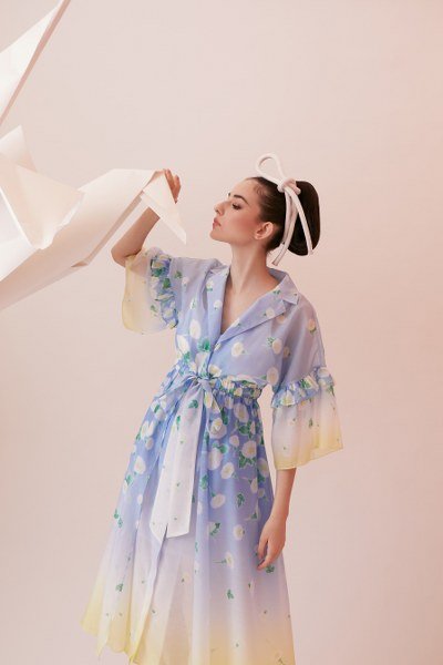 โครงจากชุดกิโมโนถูกนำเสนอในมุมมองใหม่ผสานกับเทคนิคการปักดอกไม้ 3 มิติ สะท้อนผ่านโครงร่างเสื้อผ้าหลากหลายดีไซน์พร้อมกับเติมความสดใสและอ่อนหวานในโทนสีพาสเทล อย่าง สีฟ้า, สีเหลือง, สีชมพู และ สีม่วง ชุดกระโปรงป้าย หรือ wrap dress โดดเด่นด้วยลูกเล่นการเดรปผ้าช่วงเอว เสื้อสายเดี่ยว กระโปรงผ้าลูกไม้ ดีไซน์เรียบหรูด้วยกระดุมมุก และปักดอกไม้สามมิติ เสื้อครอป กางเกงขาบาน สีออมเบร์ ไล่โทนสีเหลือง ปักลายดอกไม้ประดับเลื่อมอันเป็นเอกลักษณ์ของแบรนด์ดิษยามินิเดรส กลิ่นอายกิโมโน ไล่โทนสีฟ้า-เหลือง โดดเด่นด้วยลูกเล่นเชือกผูกเอวขนาดใหญ่และตัดต่อระบายช่วงแขน