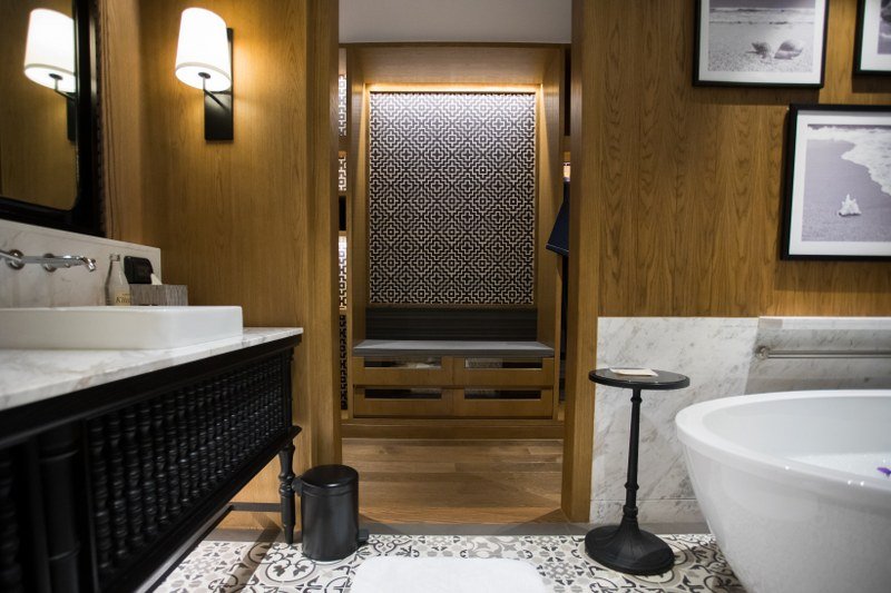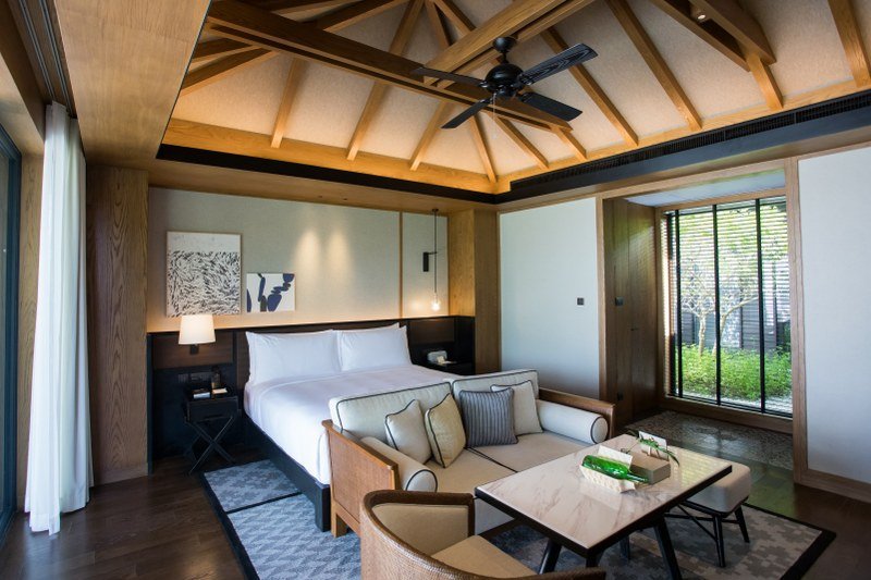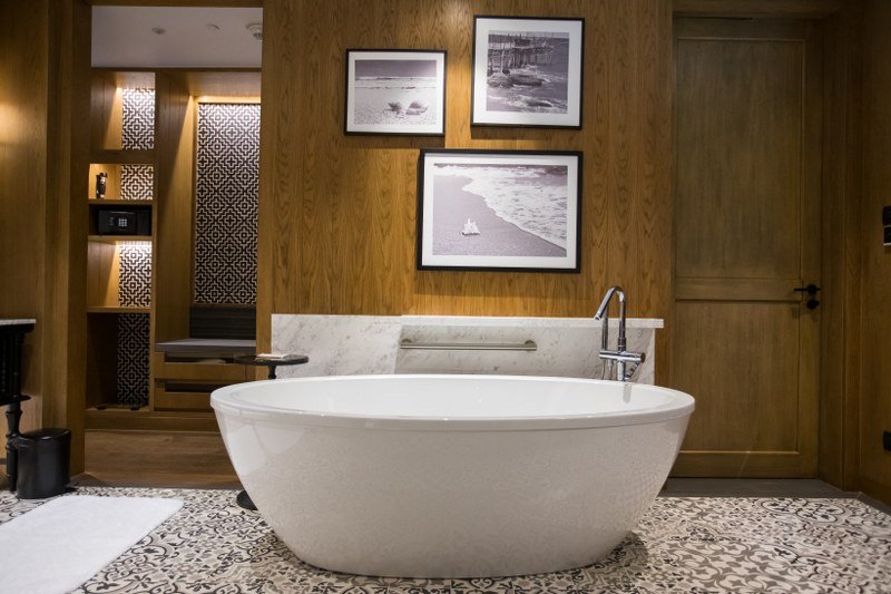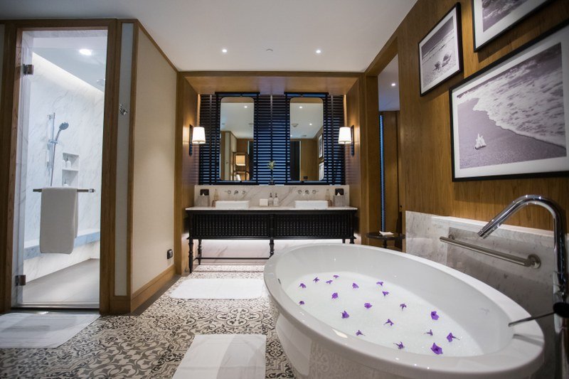 ทุกห้องพักจะมาพร้อมกับเสื้อคลุมอาบน้ำสีฟ้าน้ำทะเลจากผ้าทอมือเนื้อนุ่ม ซึ่งได้รับการออกแบบเป็นพิเศษโดยเฉพาะจากช่างตัดเสื้อท้องถิ่น และลำโพงบลูทูธพกพากันน้ำจาก Marley No Bounds พร้อมกับอ่างอาบน้ำขนาดใหญ่พิเศษที่จะมอบประสบการณ์การผ่อนคลายที่เหนือระดับด้วย amenities กลิ่นซิกเนเจอร์เฉพาะของรีสอร์ตอย่างเกลือทะเลและพิมเสน (Sea salt and Patchouli) ที่มีให้บริการทั้ง bath bombs, bath salts และ milk baths นอกเหนือจากนี้แล้วเรายังสามารถขอ Face Mask Sommelier เพื่อขอรับคำแนะนำและจัดเตรียมกลิ่นมาส์กโดยเฉพาะสำหรับช่วงเวลาแห่งการแช่น้ำผ่อนคลาย
