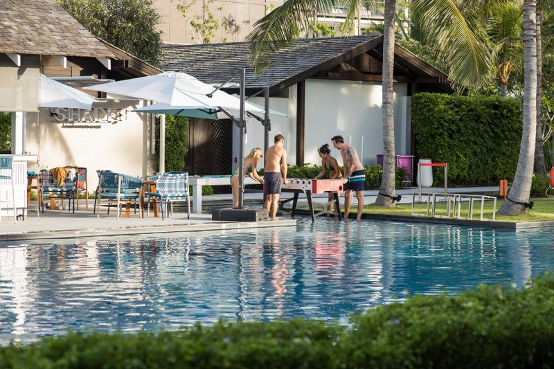 บ่ายแก่ๆ หลังจากแดดเริ่มคล้อย เราจึงได้ฤกษ์ขยับตัวออกไปสู้กับแดด อันแรงกล้า ซึ่งแอบดีใจเบาๆ ว่าทริปนี้มาไม่เจอฝน แม้จะร้อนแค่ไหนก็พร้อมสู้ บริเวณระหว่างชายหาดและสระว่ายน้ำคือ SHADES OCEAN LOUNGE & BAR ซึ่งช่วงวันหยุดจะมีดีเจมาเปิดเพลงมีบีท พร้อมบรรยากาศของแขกที่อาจจะเล่นน้ำ หรือ เล่นเกมส์กับกลุ่มเพื่อน ส่วนเราขอแนะนำ กิจกรรมเบาๆ อย่างการนั่งจิบมาการิต้า พร้อมอ่านหนังสือสักเล่ม หรือเลือกเครื่องดื่มสไตล์ทิกิแสนสดชื่น สลับคราฟต์เบียร์เย็นๆ พร้อมทาโก้ปลารสจัดจ้าน ล็อบสเตอร์โรลสดใหม่ และ หอยนางรม ก่อนจะไปจัดหนัก ในช่วงดินเนอร์ที่ร้านอาหารริมทะเล